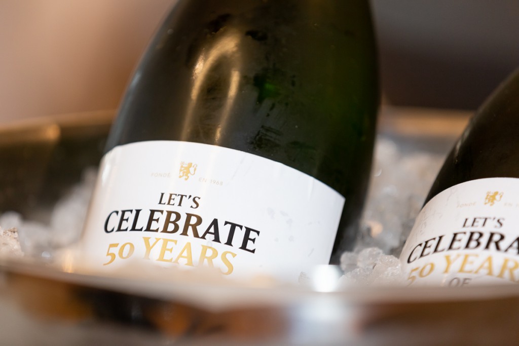 Der rote Faden (sprich der Champagner) als Key-Icon hat die Gäste von Anfang an begleitet. Vom Save the Date, Einladungs-Plakat, Event Beschriftung bis hin zur eigenen Flaschenetikette wurde das Motto der Party integriert.
